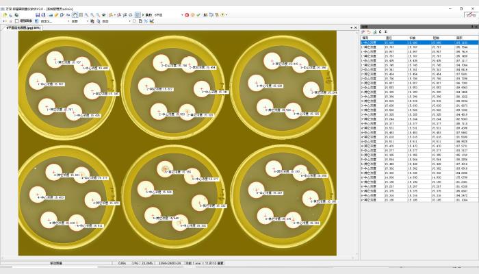 3、★一鍵化全自動同時測定6個90mm直徑平皿中的所有抑菌圈,可全自動測定局部粘連的抑菌圈,可在有局部文字干擾的情況下,自動獲得抑菌圈面積、直徑等結果。達到《JJF1614-2017抗生素效價測定儀校準規范》中各項檢測指標的要求。可使用經法定計量機構標定的標準模板,對儀器進行定期校正。